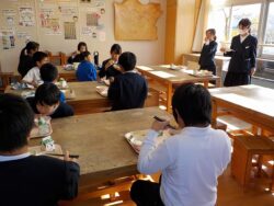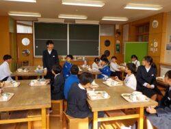 給食委員会からは、栗のイガの中には栗が何個入っているか等のクイズを出して誕生者会食を盛り上げました。