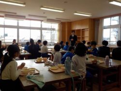 給食委員会からの発表では、アンケートの結果の発表や元気が出る朝ごはんの献立の紹介を行いました。大きな声で、はきはきと発表していました。