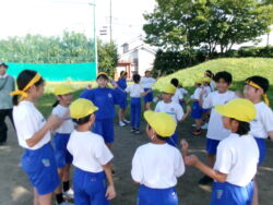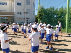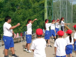 グラウンドでの練習は今回が初めてだったので、はじめはどのように並べばよいか戸惑っている様子もありましたが、しばらくするとどの団もスローガンや応援歌、コール等をグラウンドに響かせていました。優しく、丁寧に教える6年生と、その思いに応えようと一生懸命に声を出す下級生の姿が印象的でした。