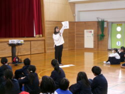 給食委員会からの発表では、アンケートの結果の発表や元気が出る朝ごはんの献立の紹介を行いました。大きな声で、はきはきと発表していました。