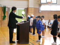 表彰では、運動会の個人走や夏休みの応募作品、スポーツクラブの大会等で、たくさんの人が表彰されました。