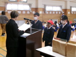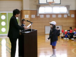 表彰では、スポーツクラブの大会等で活躍した児童が表彰されました。
