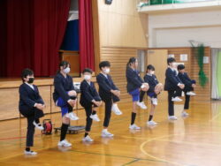 保健委員会からは、舟橋村地域学校保健委員会の中で学んだ「立腰(りつよう)パワーアップ体操」の紹介がありました。よい姿勢で過ごすための体操として「膝かかえ」「片足立ちー横8の字」「手のひらタッチ」「ツイストタッチ」の4つが紹介されました。子供たちは少し苦戦しながらも、保健委員会のお手本を見ながら、楽しそうに体操に取り組んでいました。これからも、立腰を意識して生活していきましょう。