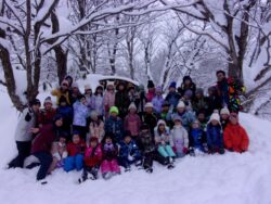 1月28日(水)に、立山青少年自然の家へ冬の校外学習に行ってきました。先週末からの大雪で新雪が積もっていて、思い切り雪遊びを楽しむことができました。バスの中から長い氷柱を見付けた子供たちは、行きのバスから大興奮でした。