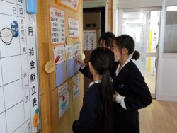 子供たちが栄養教諭や給食調理員へ感謝の手紙をプレゼントするとともに、給食時間の放送に代表者が手紙を読み、自分たちのありがとうという気持ちを伝えました。