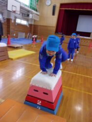 跳び箱やマットを色団の友達と協力しながら運んでいて、初めの頃より準備や片付けもとても上手になりました。寒い日が続きますが、楽しく運動して、元気いっぱい過ごしてほしいと思います。
