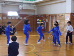 3年生・4年生・5年生は出し物を担当しました。3年生は大縄跳びや玉入れで6年生に挑戦しました。3年生、6年生ともに楽しみながら全力で取り組んでいる姿が印象的でした。