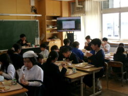 給食中の放送では、報道・集会委員が考えた「学校・先生クイズ」を行いました。今回が、6年生が行う最後のハーティ活動となりました。どの班も別れを惜しみつつ、給食を楽しんでいました。