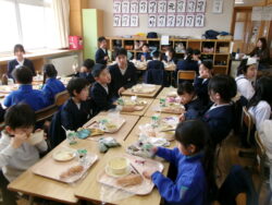 3月11日(水)、ハーティイベントとしてハーティ班ごとに縦割りで給食を食べるハーティ給食を行いました。子供たちは最初、いつもと違う教室やメンバーでの給食にドキドキしている様子でしたが、しばらくすると班ごとに仲良く話しながら給食を楽しんでいました。