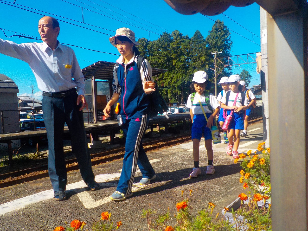 晴れ空の下、子供たちは元気に登校し、さわやかな挨拶を校内に響かせていました。