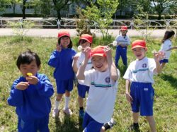 6月12日・13日に、オレンジパークへ生き物探しに行ってきました。虫網や虫かごを持って走り回り、生き物を見付けると急いで捕まえていました。バッタやチョウなど、様々な生き物を見付けて、嬉しそうでした。