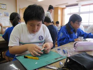 前半はタブレット端末を使った学習を行いました。共有ファイルに画像を保存する方法を学びました。子供たちは、相談しながら楽しそうに取り組んでいました。
