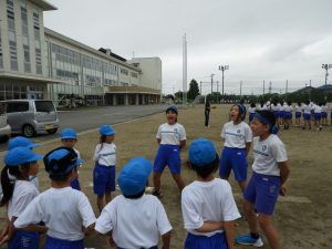 6年生を先頭に、みんなで声を合わせて応援練習をしました。